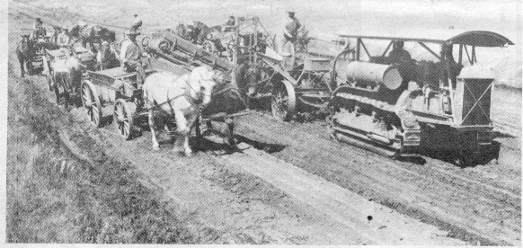 Road building was important work in the early days of Day County. These pictures were taken in 1927 using state-of-the art road building equipment.